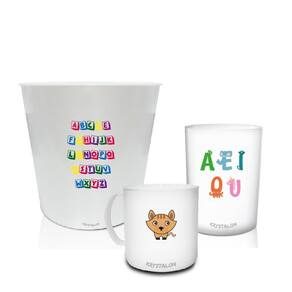 Kit Linha Inquebrável Personalizado Animais Para Dia Das Crianças O kit personalizado é ideal para presentear a criançada nesse dia tão especial para elas com personalização pensada especialmente para agradar elas, é o presente ideal para os pequenos curtirem a bebida preferida ou o alimento que adoram! Especificações: mateial: polipropileno texturizado, atenção: a caneca não é de porcelana, altura: copo: 10,5 cm diâmetro: 7,5 cm, capacidade: 320 ml, cor: branco, tamanho: único, diâmetro prato: 22 cm, altura caneca: 8,3 cm, diâmetro: 7,5 cm, capacidade: 300 ml, tamanho: único, altura balde de pipoca: 15,5 cm, diâmetro: 17 cm, capacidade: 2 litros, quantidade: 1 copo, 1 caneca, 1 prato e 1 balde de pipoca Ean: 7897581932010