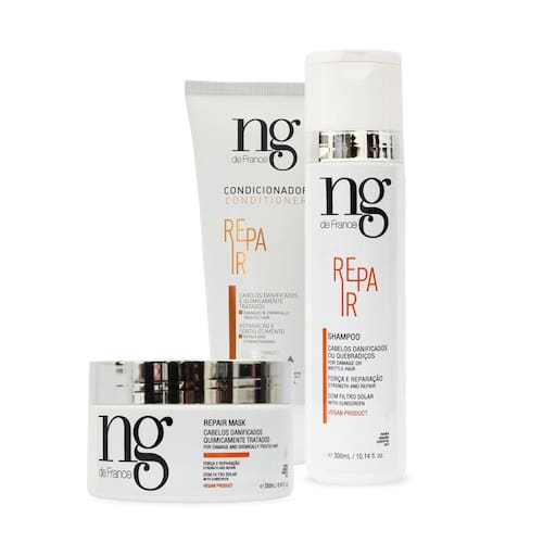 Desenvolvida para cabelos danificados e quebradiços, a Linha Repair repara, hidrata e fortalece através da reposição dos aminoácidos e proteínas nos fios. Seu ativo devolve hidratação e elasticidade proporcionando fios mais fortes e protegidos. Para cabelos danificados e quebradiços. Produtos 100% veganos. Possuí óleos essenciais. Propriedades hidratantes, nutritivas, revitalizantes, fortificantes e anti-frizz