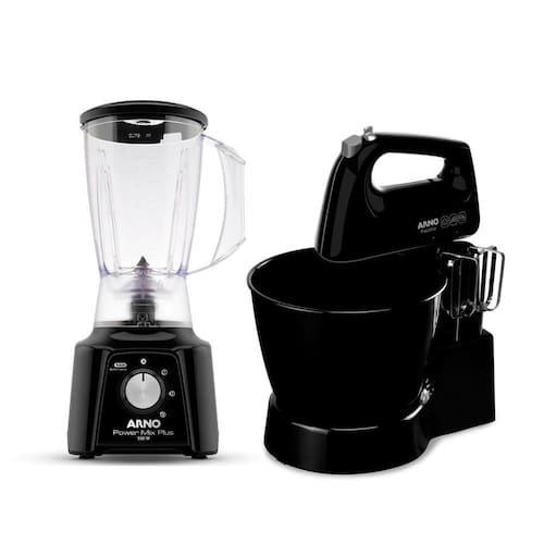 Kit batedeira e liquidificador ARNO - 127vFácil de usar, fácil de guardar, fácil de gostar! A Arno Facilita é ideal para o preparo de massas leves, chantilly, claras em neve e mousses. Além de versátil, já que pode ser usada como batedeira portátil ou montada na base, a Arno Facilita tem 250W de potência, três velocidades e a prática função pulsar. Você imagina, clic, a Arno faz! Tenha mais desempenho e durabilidade em sua cozinha! O Liquidificador Power Mix da Arno conta com uma tecnologia patenteada: as exclusivas lâminas Zelkrom - aço inox de alta qualidade - que garantem ultra resistência e durabilidade. Enriquecidas com cromo, as lâminas não mancham e não enferrujam, além de processar diversos cortes sem perder sua afiação. O Liquidificador Power Mix da Arno tem alto poder de corte e tritura até os ingredientes mais duro. São duas velocidades e função pulsar/autolimpeza com 500W de potência. Conta também com jarra de polipropileno com 2L* de capacidade total, porta fio e cabo de 80cm. Experimente resultados incríveis com o Liquidificador Power Mix da Arno - você imagina, clic, a Arno faz!