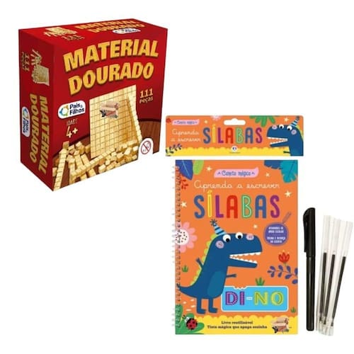 Kit educativo infantil; livro infantil interativo; caneta mágica; material dourado; Aprendizado lúdico; desenvolvimento infantil; alfabetização; matemática; Brinquedos educativos; presentes educativos; material escolar; Escola em casa; homeschooling; atividades para crianças; Estimular a criatividade; aprender brincando.