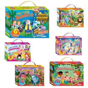 Kit livro infantil maleta divertida 6 livros + quebra cabeça em madeira - magic veja variações