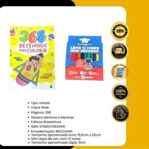 Contém : 1 unidade Livro Infantil 365 Desenhos para colorir + 12 unidades de mini lápis de cor