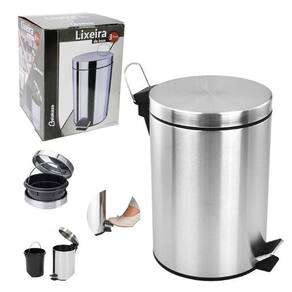 A lixeira possui capacidade para 3 litros, garantindo espaço suficiente para descartar pequenos resíduos do dia a dia. Feita em inox, ela é resistente e durável, além de ser fácil de limpar. Com medidas de 25 cm de altura e 17 cm de diâmetro, ela se encaixa perfeitamente em qualquer ambiente.