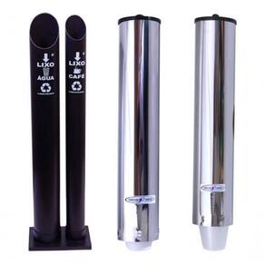 Kit Lixeira Dupla C/ Suporte Copo Descartável água Café Inox