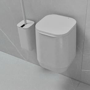 Lixeira de piso e parede Ou Linha Aura - Preto Detalhes do produto Possibilidade de uso no chão ou fixada na parede Fixação com adesivo extremamente resistente Sem necessidade de furos na parede Tecnologia Ultra Click de fixação fácil e segura Suporta até 4kg Sistema de fechamento suave na tampa.