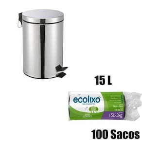 Kit Lixeira Pedal Inox 3L + 100 Sacos De Lixo 15L