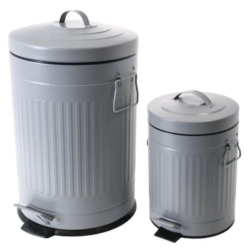 Kit Lixeira Retro com Pedal Cinza Mollie 5 litros + 20 litros