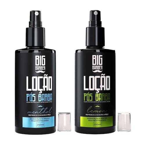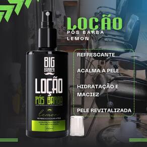 A Loção Pós Barba Big Barber profissional estimula a regeneração da pele nas áreas lesionadas Após o barbear, especialmente nas áreas em que a epiderme sofre mais lesões. Ideal para prevenir irritações e alergias na pele após a remoção dos pelos, Além de proporcionar uma deliciosa sensação refrescante à pele, deixando-a Agradavelmente perfumada.