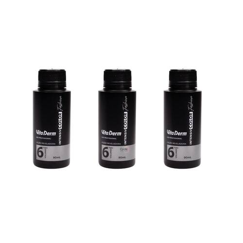 Vita Derm Intensiv Color Fashion Locao Reveladora 6 Vol 90ml Loção Reveladora 6 Vol. Vita Derm Intensiv Color Fashion e indicada para cabelos que vao passar por processos químicos de Transformacão de cor. Trata e protege os fios durante o processo. A Loção Reveladora Vita Derm Intensiv Color Fashion 6 Vol foi desenvolvida para ser utilizada na preparação De colorações e descolorações ou na tonalizacao. A emulsão cremosa e de alta rentabilidade e revela de 2 a 3 tons. Conselho de Aplicação Siga atentamente as instruções na embalagem do produto e na bula da coloração. Adicione a quantidade Indicada, conforme o procedimento a ser utilizado. Observações: Recomendamos que este produto seja apenas por profissionais; Gestantes e lactantes devem consultar seu médico antes de fazer o uso; Não deve ser aplicado em menores de 15 anos; Indicamos a realização de um teste de toque e de mecha antes do início do procedimento; Em caso de irritação ou ferida pré-existente no couro cabeludo, consulte um médico antes da aplicação; Utilize uma luva descartável no momento da aplicação. Dica O teste de toque e muito importante antes do procedimento para evitar alergias na pele, coceira ou Ardencia no local. Resultado Com alta rentabilidade promove perfeita revelacão de piamentos. Marca: Não Informado Ean: 07898560464102