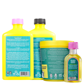 Primeiro, aplique o shampoo na raiz molhada e massageie o couro cabeludo com as pontas dos dedos. Enxágue. Repita o procedimento se sentir necessidade. Depois, distribua o condicionador no comprimento e pontas dos cabelos úmidos. Deixe agir por alguns instantes e enxague. Em seguida, espalhe a máscara em toda a extensão dos fios e deixe agir de 3 a 5 minutos. Enxágue e finalize como de costume. Para finalizar, coloque algumas gotas do óleo na palma das mãos e espalhe sobre os cabelos úmidos. Finalize como desejar.