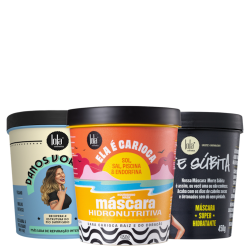 Kit com máscara hidratante, reconstrutora e hidronutritiva para todos os cabelos. Lola Cosmetics Tratamento Completo Trio traz o cuidado que seus fios merecem.