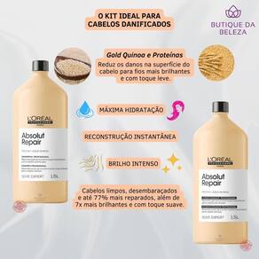 Este kit contém 01 shampoo l'oréal absolut repair gold quinoa + protein 1500ml 01 condicionador l'oréal absolut repair gold quinoa + protein 1500ml