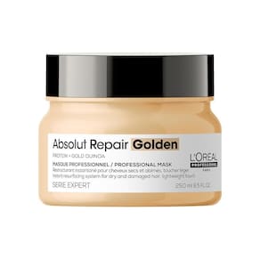 A linha de tratamento L'Oréal Professionnel Serie Expert Gold Quinoa é indicada para cabelos muito danificados.Sua fórmula enriquecida auxilia na profunda reestruturação da fibra danificada enquanto criam um filme que promove força e proteção aos fios,prevenindo danos futuros. Tudo isso com muita maleabilidade, maciez, brilho, sem rigidez e sem pesar os fios. Esta fórmula possui uma tecnologia exclusiva da LOréal Professionnel, a Co-Emulsão.Repare seu cabelo com a L'Oréal Professionnel Serie Expert Gold Quinoa Resultado:multifuncional SUGESTÃO DE USO: Shampoo1. Aplique o shampoo sobre o cabelo molhado;2. Massageie com suavidade;3. Enxágue e, se necessário, repita o processo. condicionador1. Aplique o condicionador no comprimento e pontas do cabelo;2. Deixe agir por mais o menos 3 minutos;3. Finalize enxaguando. máscara1. Aplicar no cabelo lavado e úmido;2. Deixar agir por 3 a 5 minutos;3. Enxaguar. Observações: imagem Meramente Ilustrativa. ITENS INCLUSOS:1 Shampoo L'Oréal Professionnel Serie Expert Absolut Repair Gold Quinoa 300 ml1 Condicionador L'Oréal Professionnel Serie Expert Absolut Repair Gold Quinoa 200 ml1 Máscara de Reparação L'Oréal Professionnel Serie Expert Absolut Repair Gold Quinoa Golden 250G g Ean: 1002988597748