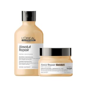 A linha de tratamento L'Oréal Professionnel Serie Expert Gold Quinoa é indicada para cabelos muito danificados.Sua fórmula enriquecida auxilia na profunda reestruturação da fibra danificada enquanto criam um filme que promove força e proteção aos fios,prevenindo danos futuros. Tudo isso com muita maleabilidade, maciez, brilho, sem rigidez e sem pesar os fios. Esta fórmula possui uma tecnologia exclusiva da LOréal Professionnel, a Co-Emulsão.Repare seu cabelo com a L'Oréal Professionnel Serie Expert Gold Quinoa Resultado:multifuncional SUGESTÃO DE USO: Shampoo1. Aplique o shampoo sobre o cabelo molhado;2. Massageie com suavidade;3. Enxágue e, se necessário, repita o processo. máscara1. Aplicar no cabelo lavado e úmido;2. Deixar agir por 3 a 5 minutos;3. Enxaguar SUGESTÃO DE USO:Imagem Meramente Ilustrativa. ITENS INCLUSOS: 1 Shampoo L'Oréal Professionnel Serie Expert Absolut Repair Gold Quinoa 300 ml1 Máscara de Reparação L'Oréal Professionnel Serie Expert Absolut Repair Gold Quinoa Golden 250G g