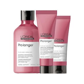 Kit L'Oréal Professionnel Serie Expert Pro Longer foi criado para cabelos longos com pontas afinadas ou danificadas. O novo Serie Expert Pro Longer é o tratamento profissional preenchedor de pontas para um cabelo mais longo, denso e com brilho. A linha conta com a tecnologia de preenchimento Filler-A100 que faz com que o produto penetre no núcleo da fibra capilar para preencher e densificar a estrutura do cabelo por dentro enquanto os aminoácidos trabalham para fortalecer o cabelo pelo lado de fora. Com o Kit L'Oréal Professionnel Serie Expert Pro Longer conquistar o cabelo longo vai ser uma realidade Resultado:força SUGESTÃO DE USO: Shampoo1. Aplique o shampoo sobre o cabelo molhado;2. Massageie com suavidade;3. Enxágue e, se necessário, repita o processo. condicionador1. Aplique o condicionador no comprimento e pontas do cabelo;2. Deixe agir por mais o menos 3 minutos;3. Finalize enxaguando.Leave-in1. Aplicar após lavagem do cabelo;2. Distribua o creme nos fios úmidos ou previamente secos antes de usar o secador, prancha e/ou modelador. Observações:imagem Meramente Ilustrativa. ITENS INCLUSOS:1 Shampoo L'Oréal Professionnel Serie Expert Pro Longer 300 ml1 Condicionador L'Oréal Professionnel Serie Expert Pro Longer 200 ml1 Leave-in L'Oréal Professionnel Serie Expert Pro Longer 150 ml Ean: 1008769333451