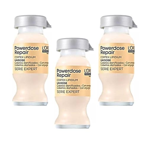 Kit LOréal Professionnel Powerdose Repair Cortex Lipidium 3x10ml Ampola Mágica Power Repair Lipidium 10ml: Seu Cabelo Novo em 5 Minutos Seu cabelo está pedindo socorro A Ampola Power Repair Lipidium é a solução que você procurava Com sua fórmula poderosa, ela reconstrói os fios danificados desde o interior, devolvendo o brilho, a maciez e a proteção que seu cabelo merece. Benefícios: