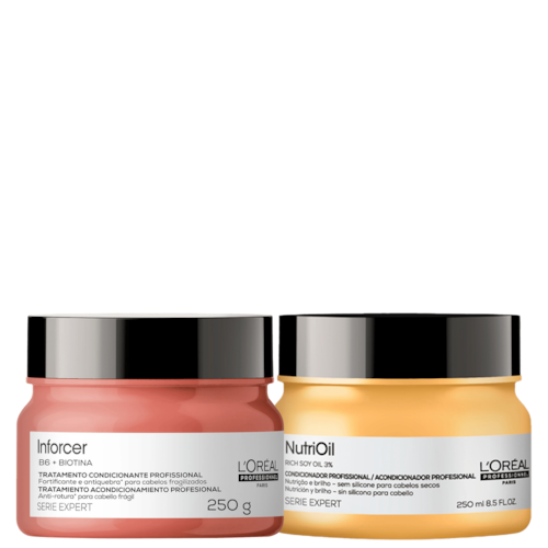 Kit de tratamento intenso com máscaras para cabelos ressecados, frágeis e quebradiços. L'Oréal Professionnel Serie Expert NutriOil Inforcer Tratamento recupera a beleza e a saúde dos fios.