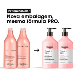 O Kit L’Oréal Professionnel Serie Expert Vitamino Color mantém a cor radiante e protegida, além de intensificar o brilho. Evita o desbotamento e garante um resultado de cor radiante e duradoura.