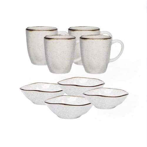 • 4 Bowls (Ø 18x7,5cm/500ml) 4 Canecas (Ø 9,7x11cm/380ml)