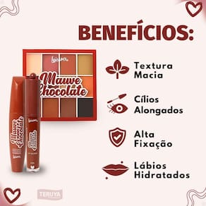 Transforme seu visual com produtos de alta qualidade que proporcionam acabamento impecável e duradouro. O Kit Luisance Mauve Chocolate é a solução para quem deseja expressar sua personalidade com um toque de sofisticação e praticidade, garantindo um olhar marcante e lábios luminosos.