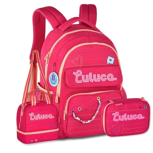 Kit Mochila de Costas Luluca LU24610 + Lancheira Térmica LU24613 + Estojo Box LU24612 - Estilo e praticidade para o dia a dia Se você busca estilo, praticidade e economia em um único kit, o Kit Escolar Completo Luluca é a escolha perfeita para começar o ano letivo com tudo Ideal para meninas modernas e organizadas, esse kit premium combina design encantador, funcionalidade e qualidade superior em cada detalhe. Mochila LU24610: Com um compartimento principal super espaçoso, ela é ideal para guardar cadernos, livros e ainda traz uma área acolchoada especial para notebook e tablet, garantindo segurança e proteção. Além disso, possui um compartimento extra grande com zíper e divisórias internas para manter seus itens sempre organizados. Na parte frontal, você encontra dois bolsos práticos, perfeitos para itens menores, e um bolso antifurto traseiro, ideal para guardar objetos de maior valor com total segurança. Já os bolsos laterais telados são ideais para garrafinhas ou pequenos acessórios. As alças ajustáveis e acolchoadas garantem conforto ao carregar a mochila, enquanto a alça superior reforçada e a alça carona permitem praticidade em viagens ou para acoplar a malas. Os detalhes são o verdadeiro charme dessa mochila Chaveiros de miçangas e rostinho feliz, patches atoalhados de flor e coração, ilhós coloridos e etiquetas de borracha completam o visual cheio de personalidade e delicadeza. Confeccionada em nylon resistente, com acabamento matelassê, ela oferece qualidade premium e durabilidade. - Dimensões aproximadas: 44x33x15 cm. A Lancheira Térmica LU24613 mantém os lanches fresquinhos e organizados com muito estilo. Possui dois compartimentos separados, ambos com fechamento por zíper e com revestimento térmico, Possui alça de mão, alça carona e alça de ombro ajustável que garantem praticidade no transporte e combinam perfeitamente com a mochila. Dimensões aproximadas: 21x21x13cm Já o Estojo Box LU24612 é estruturado e acomoda até 36 lápis ou canetas com seus elásticos internos, além de contar com um estojo extra com zíper para separar os itens. As imagens são ilustrativas; lápis e canetas não acompanham o produto. Dimensões aproximadas: 22x16x06 cm. Seja para a escola ou momentos de lazer, o Kit Luluca é perfeito para acompanhar o dia a dia com estilo e organização Marca: Não Informado Ean: 7795028259099