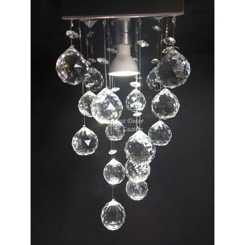 A Luz Decor e Lustres, fabricantes de lustres de cristais, acrílicos, tem como objetivo garantir produtos de qualidade com preços competitivos no mercado de Lustres, Pendentes e Luminárias.DESCRIÇÃO DO PRODUTO* Kit Lustres com cristais k9 legítimos de 40mm.* Modelo: Chuva De Cristais* Altura: 30 á 40cm* Base de inox espelhado 14x14cm com acabamento a laser.* Castanhas de cristal de 14mm.* Modelo para 01 Lâmpada GU10 (Lâmpada não inclusa)* Direto da fábrica para seu ambiente