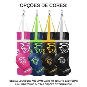 Contém: 1 par de luvas infantil 6 oz + 1 saco de pancadas vazio 50cm x 20cm. peso aproximado cheio 4,5kg