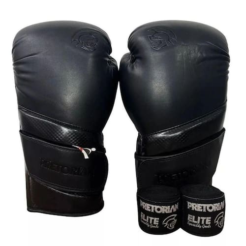 Kit Luva De Boxe Muay Thai Elite + Bandagem, Preto, 14 Oz