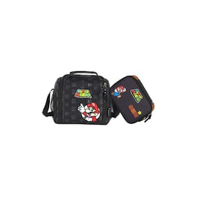 Kit Escolar Super Mario Lancheira Térmica + Estojo Box Lancheira Térmica: Forro térmico Alça transversal ajustável para facilitar o transporte. Estampa divertida com a imagem do Super Mario. Cursor personalizado Medidas: Altura: 20 cm Largura: 22cm Profundidade:13 cm