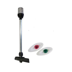 Kit Luz De Navegação Led Olho De Tubarão Branco Com MastroLuz de Alcançado em LED com Mastro de 40 cm com corpo em Alumínio, base e topo em ABS, é resistente ao ambiente marinho.Par de olho de tubarão bombordo e boreste em ABSA iluminação feita com lâmpadas em LED possuem vida útil maior que as lâmpadas tradicionais além de menor consumo. não acompanha interruptor Características dos Produtos:Três produtos juntos em um Kit;Mastro em alumínio com base e topo em ABS;Luz de alcançado em LED;Luzes olhos de tubarão em LED e ABS;Voltagem: 12v.Dimensões dos Produtos:Mastro ~ 40cm de comprimento;Luzes Olho de Tubarão ~ 16x7x3 cm;Itens Inclusos Na Embalagem:01 Mastro com Luz de Alcançado em LED;02 Luzes Olho de Tubarão em LED;