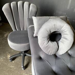 Kit Maca M1 60 + Mocho Pétala + Kit Almofadas Veludo Cinza Escuro - In9 Decor