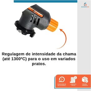 - Regulagem de intensidade da chama (até 1300°) para uso em variados pratos;
