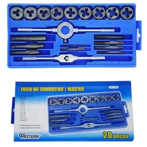 O Jogo de Tarraxa e macho 20 peças é indicado para abrir rosca em Alumínio, Ferro, Metais em Geral, Madeira, Plástico, Resinas e entre outros.