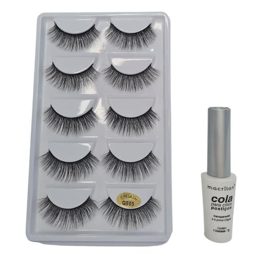 Kit Macrilan Cola Cílios Postiços+Cílios 3D 5 Pares G805 Aqui cuidamos com excelência do que temos de melhor: nossa autoestima Para nós cuidar de você não é custo, é investimento Esperamos sua compra e seja bem-vindo ao nosso universo da beleza Ean: 7799244269375