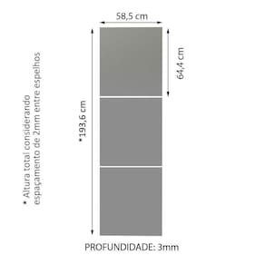 - Três (3) espelhos de 64,4 cm de altura x 58,5 cm de largura e 3 mm de espessura