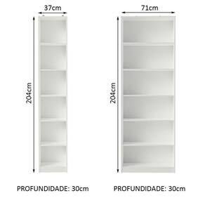 Chegou o conjunto de estantes perfeito para renovar o seu ambiente! Muito práticas e espaçosas, as estantes possuem seis nichos cada, com a na medida certa para organizar os seus livros, revistas e demais objetos de decoração. Ambas têm fabricação em MDP com ótima espessura e contam com suportes de fixação na parte superior, detalhe que reforça a segurança na instalação e no uso diário. O acabamento dos móveis é branco, feito em Pintura Poliéster de alta resistência. Esse método oferece mais proteção ao móvel e é totalmente ecológico.