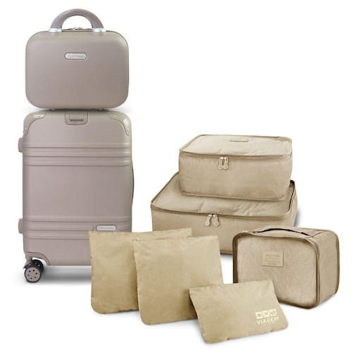 Kit Mala de Bordo, Frasqueira e Organizadores de Mala ELITE Bege -