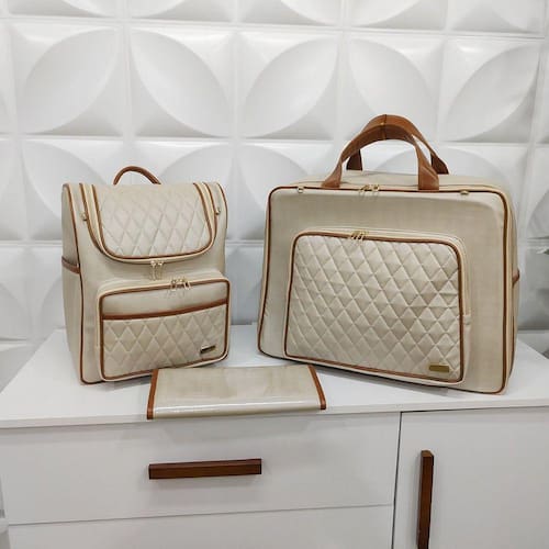 Kit Mala Maternidade, Mochila e Trocador Marfim Caramelo - Coutre Bolsas