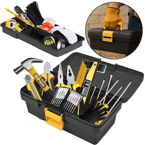 01 caixa maleta de ferramentas preta com bandeja organizadora removível