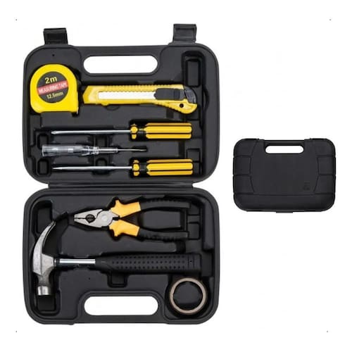 Kit ferramenta 8 peças com maleta plástica. Material reforçado, possui texturização no estojo e duas travas superiores para maior segurança. Versátil para pequenos reparos no dia-a-dia garantindo resistência contra quedas, além de manter as ferramentas seguras e organizadas. Acompanha: - fita isolante - martelo - alicate - chave philips - chave teste - chave de fenda - trena de 2 metros - estilete Dimenções: - largura: 24,8 cm - comprimento: 17,6 cm - altura: 5,5 cm Peso aproximado: 746 g do vendedor: 1 meses Marca: Não Informado Ean: 79013410792113