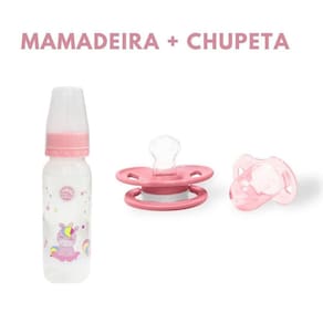 Este Kit Mamadeira Bico 240Ml + Chupeta De Silicone - Rosa foi desenvolvida pensando no máximo conforto e proteção para a pele sensível do bebê. Desenvolvida com atenção à todas as recomendações dos profissionais de saúde para garantir um produto de qualidade, que atenda às necessidades dos pais e proporcionando conforto aos bebês. ________________ Mais informações sobre o produto: Kit Mamadeira Bico 240ml + Chupeta de Silicone Fase 1 com Capuz Praticidade é uma ferramenta essencial para o dia a dia de toda mãe. Pensando nisso,a Pais e Filhos trouxe o kit mamadeira mais chupeta, para completar a rotina e deixar mamães e bebês ainda mais felizes. Vem com1 mamadeira e 1 chupeta, com bico em silicone livre de BPA e é sistema anti . Pode ir no micro-ondas e refrigerador, é aprovado pelo INMETRO. Livre de BPA O Kit Contém: 1 mamadeira rosa com 1 chupeta rosa OU 1 mamadeira azul com 1 chupeta azul Sobre a mamadeira: - Referencia: 0054 - Recomedações: 0 a 6 meses Capacidade: 240ml Bico Assimétrico de silicone EAN : 7896647000489 Tamanho: 20cm x 5cm x 55cm AXCXL Sobre a chupeta: - Bico Assimétrico - Bico 100% Silicone - Livre de BPA - Tamanho 1 - Recomedações: 0 a 6 meses EAN:7896647000595 Referencia: 1649 Tamanho: 20cm x 5cm x 55cm AXCXL Obs: Os modelos das garrafas são Aviso importante: este produto somente deve ser na alimentação de crianças menores de 1 um ano de idade com indicação expressa de médico ou nutricionista. O aleitamento materno evita infecções e alergias e fortalece o vínculo mãe-filho. Marca: Não Informado