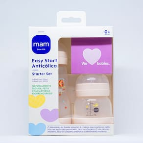 O Kit Mamadeira MAM Easy Start™ foi desenvolvido em parceria com especialistas da saúde para proporcionar máxima segurança, conforto e praticidade desde o nascimento. Com design moderno e tecnologia patenteada, oferece ao bebê um fluxo natural e suave, reduzindo o risco de cólicas e facilitando a adaptação ao bico. Além disso, é totalmente desmontável, autoesterilizável em apenas 3 minutos e livre de substâncias nocivas, garantindo tranquilidade aos pais em qualquer lugar.