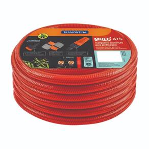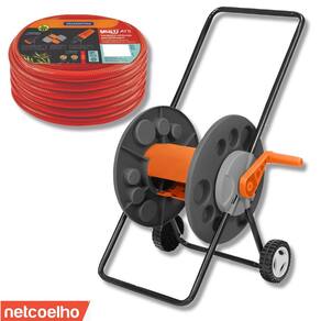 Enrolador de Mangueira Tramontina e Mangueira Antitorção . - Não torce e não dobra - permitindo fluxo de água constante. - Possui 25 metros de comprimento. - Recomendada para situações de uso com pressão da água de até 14 bar [203 psi] e temperatura de 50ºC. - Para maior resistência possui 3 camadas distintas: interna em PVC, intermediária em fio de poliéster trançado e externa em PVC. - Acompanha 01 esguicho com jato regulável, 02 engates rápidos e 01 adaptador fêmea com rosca de 3/4" e redução de 1/2". - O esguicho possui prático sistema de regulagem do fluxo dágua através do regulador frontal. - O esguicho é conectado em mangueiras de 1/2", 5/8" e 3/4" através de sistema de engate rápido. O enrolador de mangueira Tramontina é ideal para que sua mangueira não fique com nós e bloqueie o fluxo de água. Produzido em polipropileno de alta resistência, o enrolador proporciona maior durabilidade. O produto possui ótimo acabamento e tamanho compacto, perfeito para guardar em qualquer espaço da sua garagem. Os enroladores de mangueira Tramontina são acessórios indispensáveis para conservar e facilitar a utilização das mangueiras Tramontina. O enrolador de mangueira pode ser montado e desmontado sem a utilização de ferramentas. Tem capacidade de armazenamento de até 55 metros de mangueira de 1/2". Ean: 7891117101840