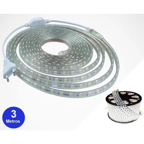 3 Metros Mangueira Chata Fita Led 110V Branco Frio 6MM 4040