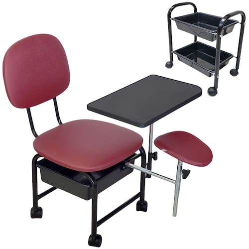 • Praticidade: O carrinho auxiliar oferece duas bandejas e rodinhas, facilitando a organização e o deslocamento dos materiais, otimizando o trabalho diário.