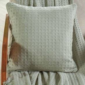Kit Manta e 2 Capa de Almofada Decorativa para Sofá Waffle 100% Algodão 120x150cm Verde Alfafa -