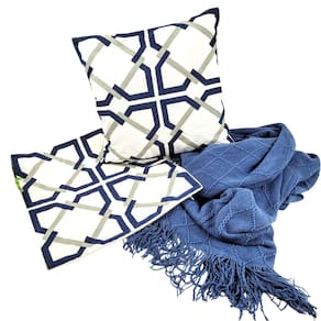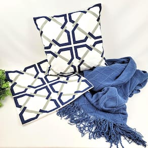 Kit Manta Para Sofá Azul Com Capa De Almofada