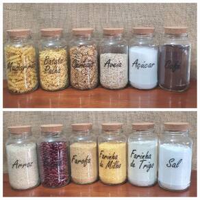 Itens Inclusos: 12 Potes de vidro 830ml com Rolha 1 Cartela com 12 etiquetas de Mantimentos