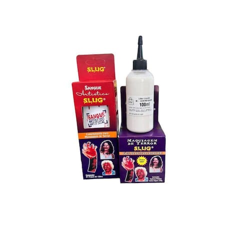 Este kit contém: 1 sangue artificial 120ml slug + 1 látex 100ml + 1 massa 200gr slug