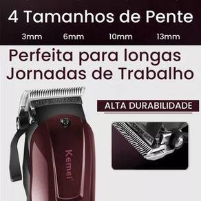 Kit para Barbeiros e Cabeleireiros com Suporte de Acessórios O Kit para Barbeiros e Cabeleireiros foi desenvolvido para quem busca praticidade, qualidade e organização no dia a dia da barbearia ou salão. Composto por ferramentas essenciais, este kit garante cortes impecáveis e um acabamento refinado, elevando a experiência do cliente. Destaques do Kit: Máquina de Corte Kemei KM 2600 Potente e resistente, ideal para cortes de cabelo e barba. Acompanha 4 pentes guia para diferentes comprimentos. Máquina de Acabamento e Detalhes Kemei Km 9163 Leve e precisa, perfeita para contornos, desenhos e finalizações impecáveis. Inclui 3 pentes para ajustes de altura. Kit de Tesouras Profissionais + Navalhete Essencial para cortes detalhados e técnicas avançadas. Inclui 2 tesouras retas e de 1 de desbaste. Suporte para Acessórios de Barbearia Organização total para armazenar máquinas, pentes, tesouras e outros acessórios com fácil acesso e praticidade. O que vem no kit 1 Máquina de Corte Kemei KM 2600, Com 4 Pentes guia: 3mm, 6mm, 10mm e 13mm 1 Máquina de Acabamento e Detalhes Kemei KM 9163, Ideal para contornos e desenhos 3 Pentes guia, nos tamanhos: 1/2, 1 e 1.1/2 Kit de Tesouras e Navalhete em aço inox, com: 2 Tesouras retas para cortes precisos 1 Tesoura de desbaste para reduzir volume 1 Navalhete para finalizações 1 Suporte Organizador para Barbearia: Espaço para armazenar até 3 máquinas 9 compartimentos para pentes, mantendo-os organizados 6 espaços para tesouras, proporcionando fácil acesso 1 compartimento multiuso para outros acessórios Dispenser de lâminas para máxima praticidade. Produto enviado desmontado para facilitar o transporte. Acompanha manual com QR Code para um vídeo tutorial detalhando a montagem. Inclui cola para fixação. Este kit é a escolha ideal para barbeiros e cabeleireiros que buscam eficiência, organização e qualidade no atendimento. Invista nas ferramentas certas e eleve o nível dos seus serviços. Marca: Não Informado